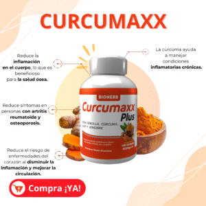 Curcumaxx Plus es un suplemento natural diseñado para fortalecer el sistema inmunológico, reducir la inflamación y mejorar la digestión gracias a su exclusiva combinación de cúrcuma, jengibre, ajo y cebolla.