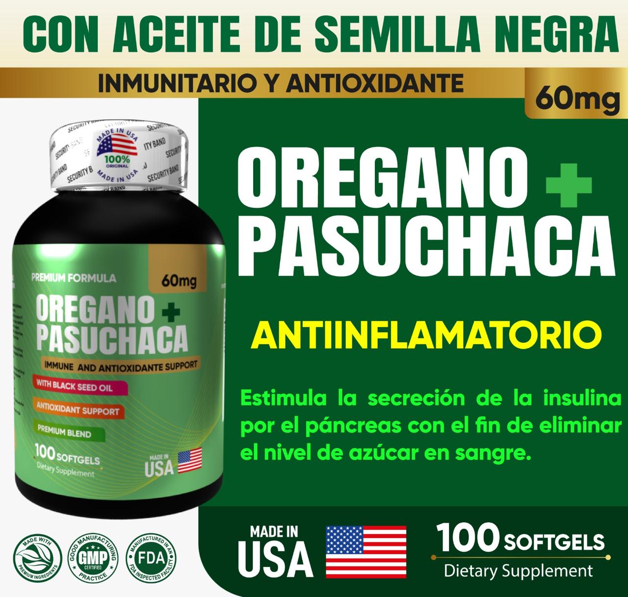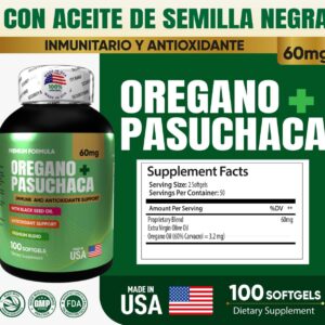 Descubre la fusión natural de Orégano y Pasuchaca, una fórmula premium elaborada en EE. UU. para fortalecer el sistema inmunológico, apoyar la salud digestiva y promover el bienestar general.